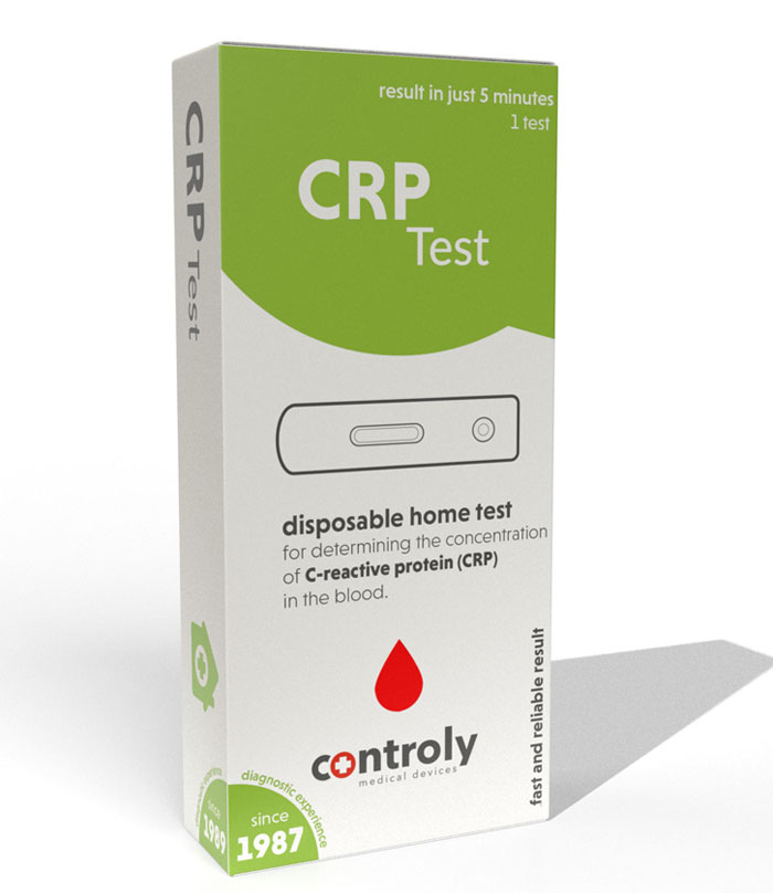 CRP test enables the detection of C-reactive protein in four ranges: below 10 mg/L, 10-40 mg/L, 40-80 mg/L and equal to or higher than 80 mg/L. Usually, the test result above 10 mg/L CRP indicates a developing infection or inflammation of the body. The determination of CRP levels can be used in particular to differentiate bacterial from viral infections.